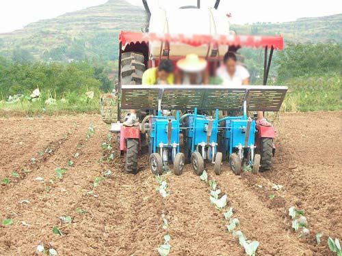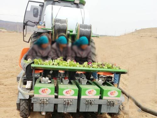 八行牽引式洋蔥苗移栽機工作現(xiàn)場